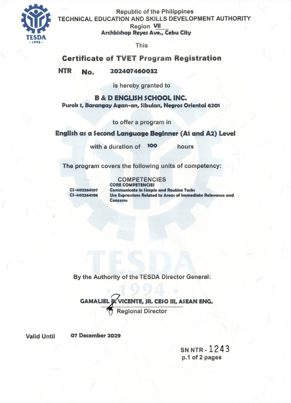 | 学校所在地 | B&D English School, Purok 1 Aganan, Sibulan Negros Oriental 6201 Philippines ドゥマゲッティ空港の近くの好立地でございます |